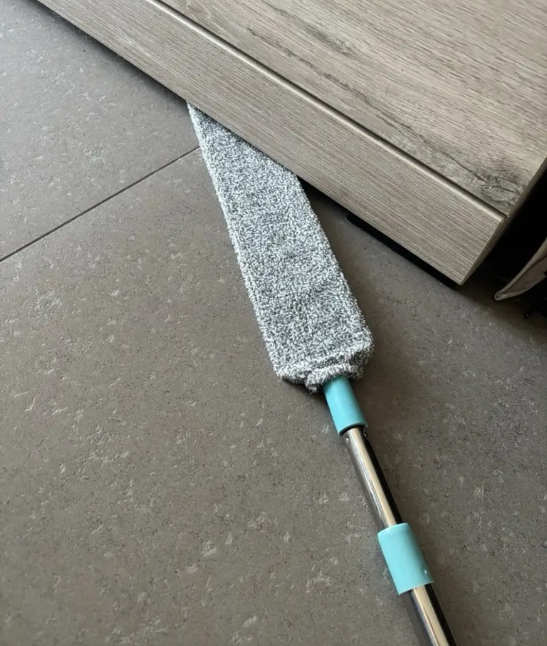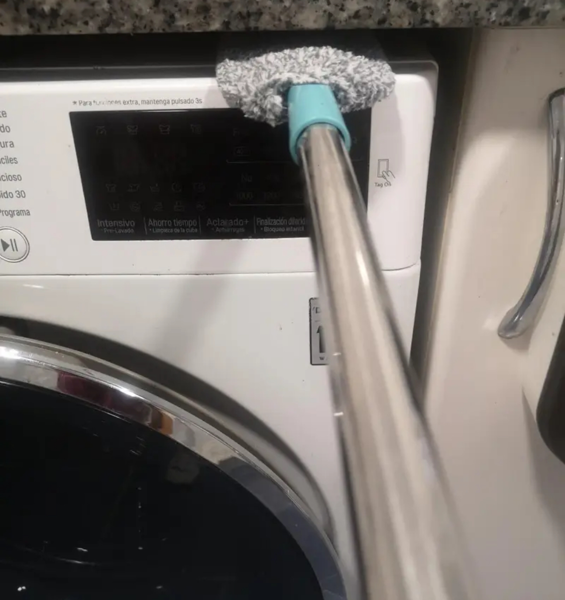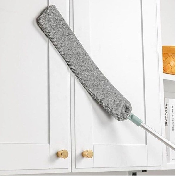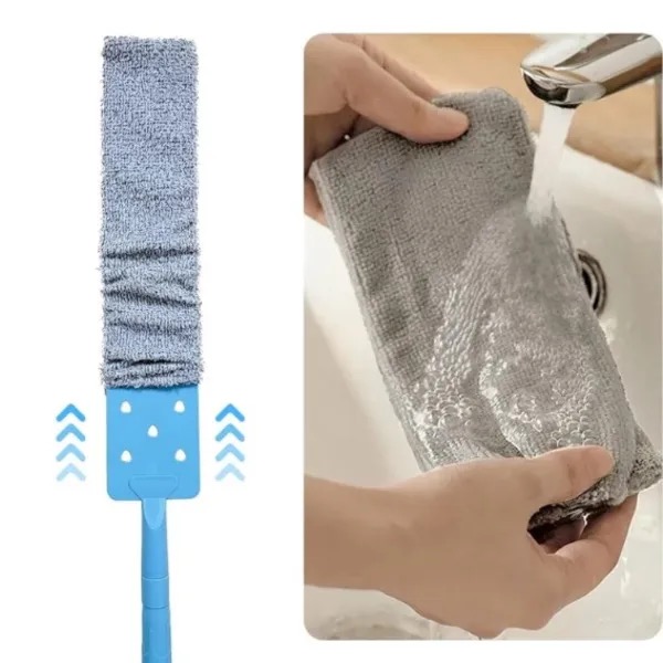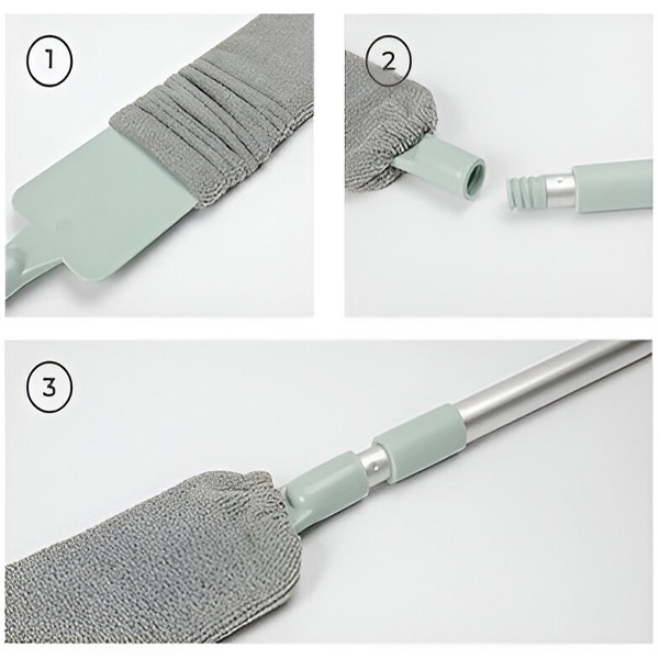 Удължаващата се телескопична дръжка ви позволява да почиствате високи и тесни пространства без нужда от стълба. Перфектен за тавани, рафтове, вентилатори и други труднодостъпни места.